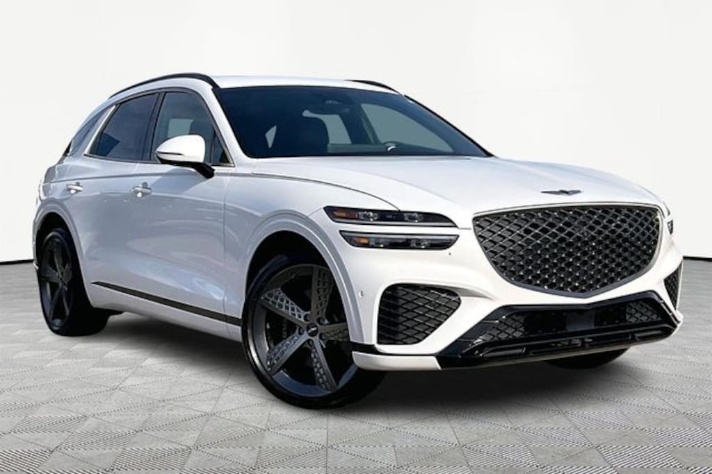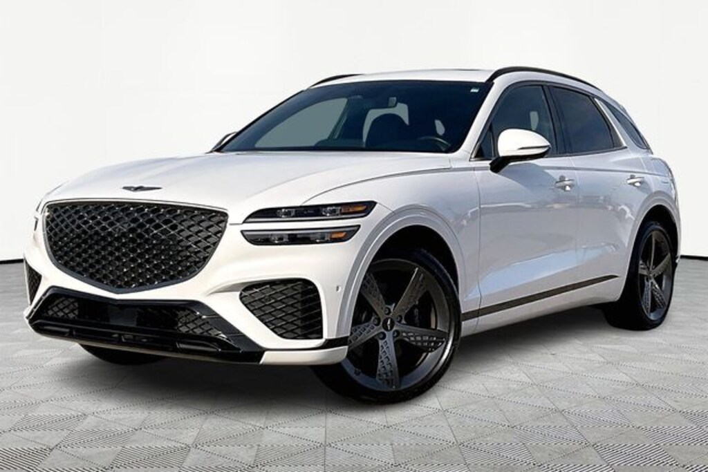 Advanced Package (Option Group 02 and Option Group 03), Select Package, Sport Prestige Package (Option Group 04), GV70 2.5T Sport Prestige, Genesis Certified Certified, 2.5L DOHC, AWD, Android Auto & Apple CarPlay, Electronic Stability Control, Exterior Parking Camera Rear, Fully automatic headlights, Heated door mirrors, Heated Front Bucket Seats, Heated front seats, Illuminated entry, Low tire pressure warning, Navigation System, Power Liftgate, Radio: 14.5" Navigation System w/AM/FM/HD Radio, Rear Parking Sensors, Security system, Speed control, Wheels: 19" Dark Hyper Silver Alloy, 4-Wheel Disc Brakes, 9 Speakers, ABS brakes, Air Conditioning, Alloy wheels, AM/FM radio: SiriusXM, Anti-whiplash front head restraints, Auto High-beam Headlights, Auto-dimming Rear-View mirror, Automatic temperature control, Brake assist, Bumpers: body-color, Delay-off headlights, Driver door bin, Driver vanity mirror, Dual front impact airbags, Dual front side impact airbags, Emergency communication system: Genesis Connected Services, Four wheel independent suspension, Front anti-roll bar, Front Bucket Seats, Front Center Armrest w/Storage, Front dual zone A/C, Front reading lights, Garage door transmitter: HomeLink, Knee airbag, Leather steering wheel, Leatherette Seating Surfaces, Occupant sensing airbag, Outside temperature display, Overhead airbag, Overhead console, Panic alarm, Passenger door bin, Passenger vanity mirror, Power door mirrors, Power driver seat, Power passenger seat, Power steering, Power windows, Rain sensing wipers, Rear anti-roll bar, Rear reading lights, Rear seat center armrest, Rear window defroster, Rear window wiper, Remote keyless entry, Speed-sensing steering, Speed-Sensitive Wipers, Split folding rear seat, Spoiler, Steering wheel mounted audio controls, Tachometer, Telescoping steering wheel, Traction control, Trip computer, Turn signal indicator mirrors, and Variably intermittent wipers.