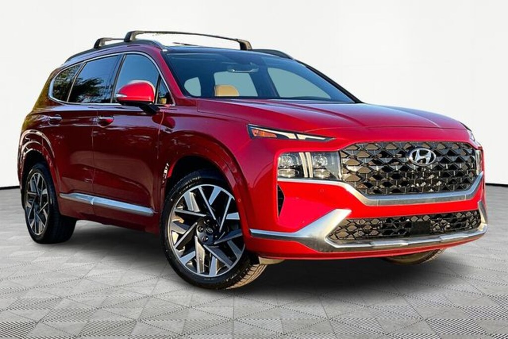 CARFAX One-Owner. Clean CARFAX. Certified. Calypso Red 2022 Hyundai Santa Fe Calligraphy FWD Shiftronic 2.5L I4