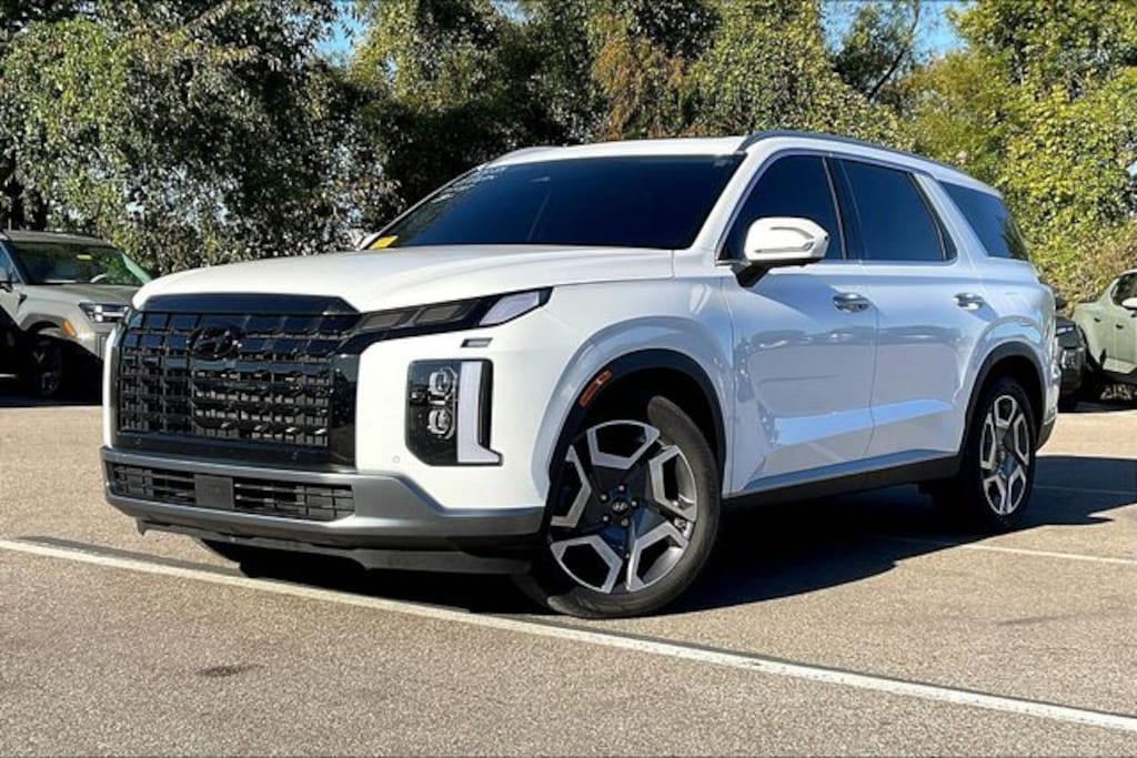 8-Passenger Bench Seating (8-Passenger Bench Seating (P3)), Palisade SEL Premium, Hyundai Certified Used Vehicles Certified, V6, FWD, Exterior Parking Camera Rear, Fully automatic headlights, Navigation System, Power Liftgate, Power moonroof, Security system, Speed control, Wheels: 20" x 7.5J Alloy, 3rd row seats: split-bench, 4-Wheel Disc Brakes, 6 Speakers, ABS brakes, Air Conditioning, All-Season Fitted Liners, AM/FM radio: SiriusXM, Apple CarPlay & Android Auto, Auto High-beam Headlights, Auto-dimming door mirrors, Auto-dimming Rear-View mirror, Automatic temperature control, Brake assist, Bumpers: body-color, Cargo Blocks, Cargo Cover, Cargo Tray, Carpeted Floor Mats, Delay-off headlights, Driver door bin, Driver vanity mirror, Dual front impact airbags, Dual front side impact airbags, Electronic Stability Control, Emergency communication system, First Aid Kit, Four wheel independent suspension, Front anti-roll bar, Front Bucket Seats, Front Center Armrest, Front dual zone A/C, Front reading lights, Garage door transmitter: HomeLink, H-Tex Leatherette Seat Trim, Heated & Ventilated Front Bucket Seats, Heated door mirrors, Heated front seats, Heated rear seats, Heated steering wheel, Illuminated entry, Knee airbag, Leather steering wheel, Low tire pressure warning, Memory seat, Occupant sensing airbag, Outside temperature display, Overhead airbag, Overhead console, Panic alarm, Passenger door bin, Passenger vanity mirror, Power door mirrors, Power driver seat, Power passenger seat, Power steering, Power windows, Radio data system, Radio: AM/FM/MP3 Audio System, Rear air conditioning, Rear anti-roll bar, Rear audio controls, Rear reading lights, Rear side impact airbag, Rear window defroster, Rear window wiper, Reclining 3rd row seat, Remote keyless entry, Speed-sensing steering, Split folding rear seat, Spoiler, Steering wheel mounted audio controls, Tachometer, Telescoping steering wheel, Tilt steering wheel, Traction control, Trip computer, Turn signal indicator mirrors, Variably intermittent wipers, Ventilated front seats, Ventilated rear seats, and Wheel Locks.