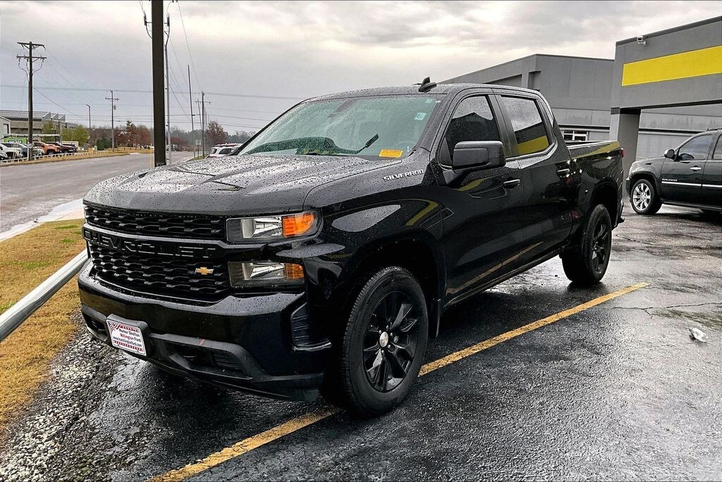 CARFAX One-Owner. Clean CARFAX. Black 2021 Chevrolet Silverado 1500 Custom RWD 8-Speed Automatic 2.7L Turbo **CLEAN VEHICLE HISTORY REPORT**, **ONE OWNER**, 8-Speed Automatic, Black Cloth, 170 Amp Alternator, 3.5" Diagonal Monochromatic Display, Bluetooth® For Phone, Body Color Grille, Color-Keyed Carpeting Floor Covering, Compass, Custom Convenience Package, Custom Value Package, Deep-Tinted Glass, Electric Rear-Window Defogger, Electronic Cruise Control, EZ Lift Power Lock & Release Tailgate, Front Frame-Mounted Black Recovery Hooks, Front Rubberized Vinyl Floor Mats, Infotainment Package, LED Cargo Area Lighting, Manual Tilt Wheel Steering Column, Power Door Locks, Power Front Windows w/Driver Express Up/Down, Power Front Windows w/Passenger Express Down, Power Rear Windows w/Express Down, Preferred Equipment Group 1CX, Rear 60/40 Folding Bench Seat (Folds Up), Rear Rubberized-Vinyl Floor Mats, Remote Keyless Entry, Remote Vehicle Starter System, Standard Tailgate, Trailering Package, Wheels: 20" x 9" Bright Silver Painted Aluminum.