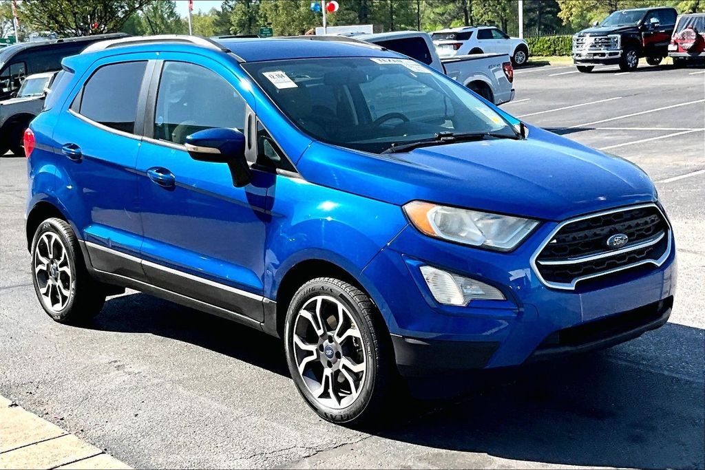 CARFAX One-Owner. Clean CARFAX. Lightning Blue Metallic 2018 Ford EcoSport SE FWD 6-Speed Automatic EcoBoost 1.0L I3 GTDi DOHC Turbocharged VCT **CLEAN VEHICLE HISTORY REPORT**, **ONE OWNER**, 110V/150W AC Power Outlet, 7 Speakers, Air Conditioning, Ambient Lighting, BLIS Blind Spot Information System, Equipment Group 200A, Exterior Parking Camera Rear, SE Convenience Package, Steering wheel mounted audio controls, SYNC 3 Communications & Entertainment System w/47B, SYNC Connect, Traction control, Wheels: 17" Painted Machined Aluminum.