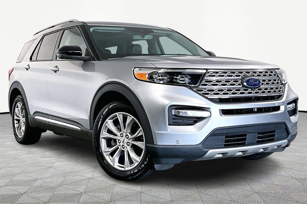 Clean CARFAX. Iconic Silver Metallic 2021 Ford Explorer Limited 4WD 10-Speed Automatic 2.3L EcoBoost I-4 **CLEAN VEHICLE HISTORY REPORT**, **LOCAL TRADE IN**, 4WD, 12 Speakers, 18" Premium Painted Aluminum Wheels, Air Conditioning, Dual Zone A/C, Equipment Group 301A, Exterior Parking Camera Rear, Fully automatic headlights, Limited Convenience Package, Navigation System, Premium Leather 40/20/40 Front Seat, Security system, Steering wheel mounted audio controls, SYNC 3 Communications & Entertainment System, Traction control, Twin Panel Moonroof.