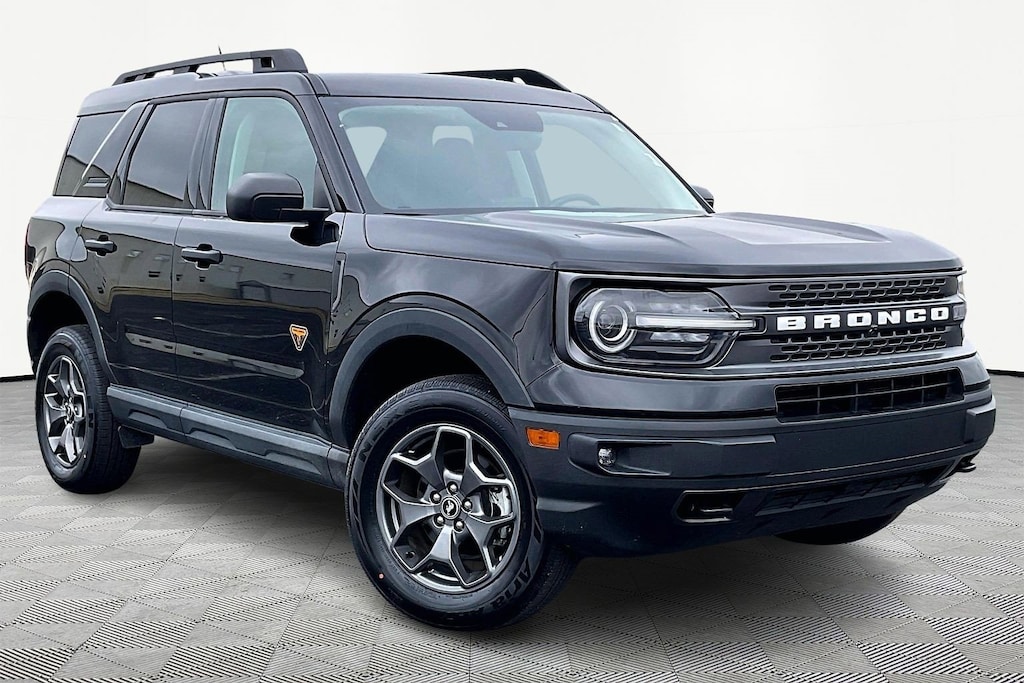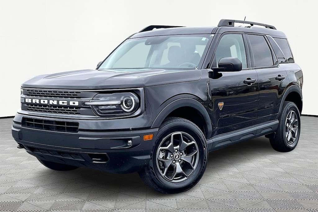 2023 Ford Bronco Sport Badlands Shadow Black EcoBoost 2.0L I4 GTDi DOHC Turbocharged VCT 8-Speed Automatic 4WD **CLEAN VEHICLE HISTORY REPORT**, **ONE OWNER**, **LOCAL TRADE**, Equipment Group 400A, Wheels: 17" Carbonized Gray-Painted Aluminum.