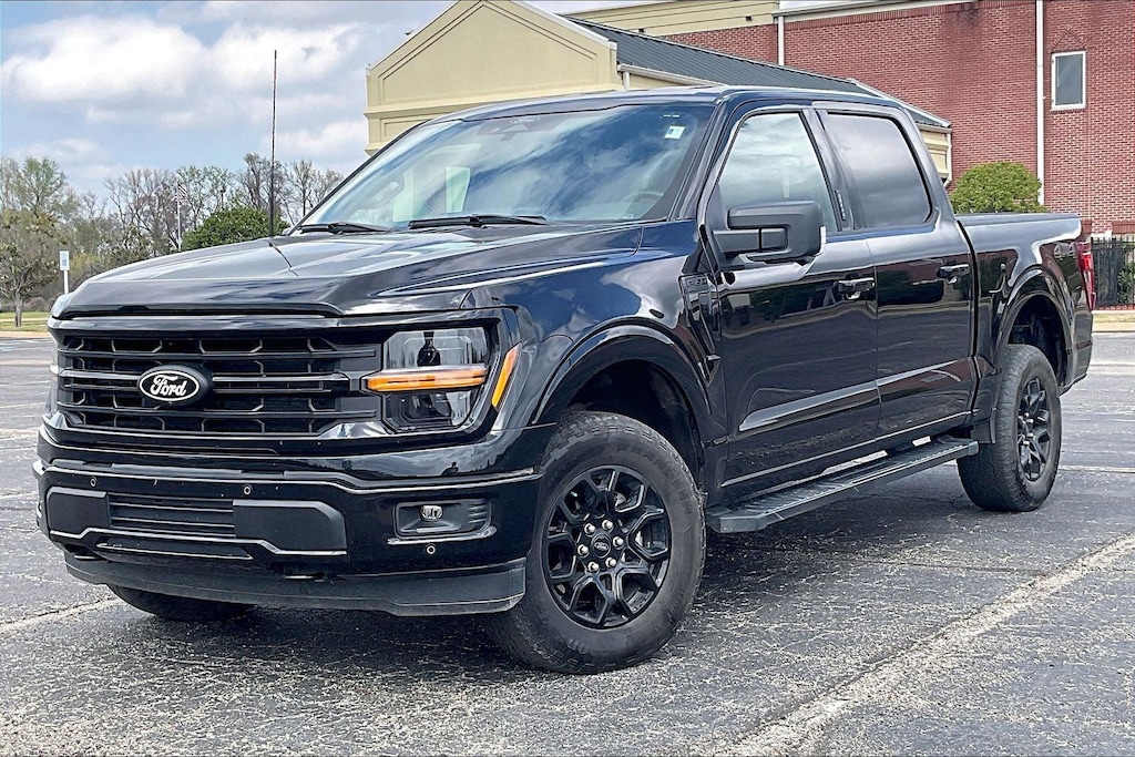 2024 Ford F-150 XLT Agate Black Metallic 5.0L V8 10-Speed Automatic 4WD **CLEAN VEHICLE HISTORY REPORT**, **ONE OWNER**, **LOCAL TRADE**, **LOW MILES**, 400W Cab & Bed Outlets, 6" Black Running Boards, Adaptive Cruise Control w/Stop & Go, Black Exterior Badging, Black Grille, Body-Color Front & Rear Bumpers, Cloth 40/Console/40 Front Seats, Dark Interior Appliques, Electronic Locking w/3.73 Axle Ratio, Equipment Group 302A Mid, Floor Shifter, Ford BlueCruise Equipped (90-Day Trial), Gray Box Side Decal, GVWR: 7,100 lbs Payload Package, Heated Front Seats, Integrated Trailer Brake Controller, Intelligent Access w/Push Button Start, Navigation system: Connected Navigation, Power Glass Heated Sideview Mirrors, Power-Sliding Rear Window, Remote Start System w/Remote Tailgate Release, Tow/Haul Package, Unique Sport Cloth 40/Console/40 Front-Seats, Wheels: 18" Gloss Black, XLT Black Appearance Package.