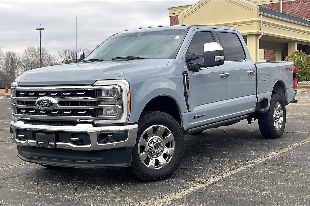 2024 Ford F-250SD Lariat Glacier Gray Metallic Tri-Coat Power Stroke 6.7L V8 DI 32V OHV Turbodiesel 10-Speed Automatic 4WD **CLEAN VEHICLE HISTORY REPORT**, **ONE OWNER**, **LOCAL TRADE**, **LOW MILES**, RECENT ARRIVAL, 4-Way Adjustable Headrests, BLIS w/Cross-Traffic Alert, Engine Block Heater, F-250 >10K GVWR Package, Front Sensing System, Head-Up Display, Heated front seats, Heated rear seats, Heated steering wheel, Intelligent Adaptive Cruise Control w/Stop-and-Go, Lariat Ultimate Package, Leather steering wheel, Navigation system: Connected Navigation (includes complimentary 1-year trial), Pro Power Onboard - 2kW, Pro Trailer Backup Assist, Pro Trailer Hitch Assist, Radio: B&O Sound System by Bang & Olufsen, Radio: B&O Unleashed Sound System by Bang & Olufsen, Rain sensing wipers, Remote keyless entry, SiriusXM Radio w/360L, Steering wheel mounted audio controls, SYNC 4 w/Enhanced Voice Recognition, Tailgate Step & Handle, Upfitter Switches (6), Wheels: 20" Chrome PVD Aluminum, Wireless Charging Pad.