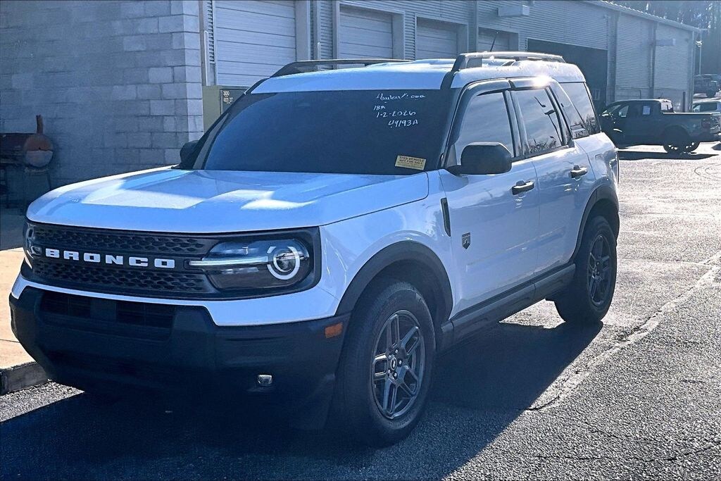 CARFAX One-Owner. Oxford White 2025 Ford Bronco Sport Big Bend 4WD 8-Speed Automatic 1.5L EcoBoost **CLEAN VEHICLE HISTORY REPORT**, **ONE OWNER**, **LOCAL TRADE IN**, 6 Speakers, Air Conditioning, Brake assist, Convenience Package, Equipment Group 200A, Front Driver/Passenger Seat Back Map Pockets, Fully automatic headlights, Heated 8-Way Power Driver's Seat, LED Fog Lamps, Power steering, Premium Wrapped Steering Wheel, Rear Parking Sensors, Security system, Traction control, Universal Garage Door Opener (UGDO), Wheels: 17" Carbonized Gray-Painted Aluminum.