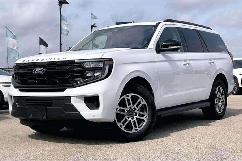 Equipment Group 202A High Package (2nd Row Power-Folding Captain's Chairs, 360-Degree Zone Lighting, 3rd Row Flexible Seating, 4-Door Intelligent Access (Lock/Unlock), ActiveX Front Heated Captain's Chairs, BlueCruise Equipped, Flex Powered Console, Ford Split Gate, Front Side Laminated Glass, Heated Steering Wheel, Memory Driver Seat, Power Panoramic Vista Roof w/Power Sunshade, Power Tilt/Telescopic Steering Wheel w/Memory, Power-Folding Sideview Mirrors w/Autofold, Rain Sensing Wipers, SecuriCode Keyless Entry Pad, Universal Garage Door Opener, USB Ports, Wheels: 20" Carbonized Gray Bright Machined Aluminum, Wireless Charging Pad, and 110V/400W AC Power Outlet), Expedition Active, EcoBoost 3.5L V6 GTDi DOHC 24V Twin Turbocharged, RWD, Apple CarPlay/Android Auto, Exterior Parking Camera Rear, Fully automatic headlights, Navigation System, Security system, 3.31 Axle Ratio, 3rd row seats: split-bench, 4-Wheel Disc Brakes, 6 Speakers, ABS brakes, Air Conditioning, AM/FM radio: SiriusXM with 360L, Auto High-beam Headlights, Auto-dimming Rear-View mirror, Automatic temperature control, Brake assist, Bumpers: body-color, Cloth Front Captain's Chairs, Compass, Delay-off headlights, Driver door bin, Driver State Detection, Driver vanity mirror, Dual front impact airbags, Dual front side impact airbags, Electronic Stability Control, Emergency communication system: 911 Assist, Four wheel independent suspension, Front anti-roll bar, Front Bucket Seats, Front Center Armrest, Front dual zone A/C, Front License Plate Bracket, Front reading lights, Heated door mirrors, Illuminated entry, Intersection Assist, Low tire pressure warning, Occupant sensing airbag, Outside temperature display, Overhead airbag, Overhead console, Panic alarm, Passenger door bin, Passenger vanity mirror, Power door mirrors, Power driver seat, Power passenger seat, Power steering, Power windows, Radio data system, Radio: AM/FM Stereo w/MP3 Capable, Rear air conditioning, Rear anti-roll bar, Rear reading lights, Rear window defroster, Rear window wiper, Reclining 3rd row seat, Remote keyless entry, SiriusXM w/360L, Speed control, Speed-sensing steering, Speed-Sensitive Wipers, Split folding rear seat, Spoiler, Steering wheel mounted audio controls, Tachometer, Telescoping steering wheel, Tilt steering wheel, Traction control, Trip computer, Variably intermittent wipers, and Voltmeter.