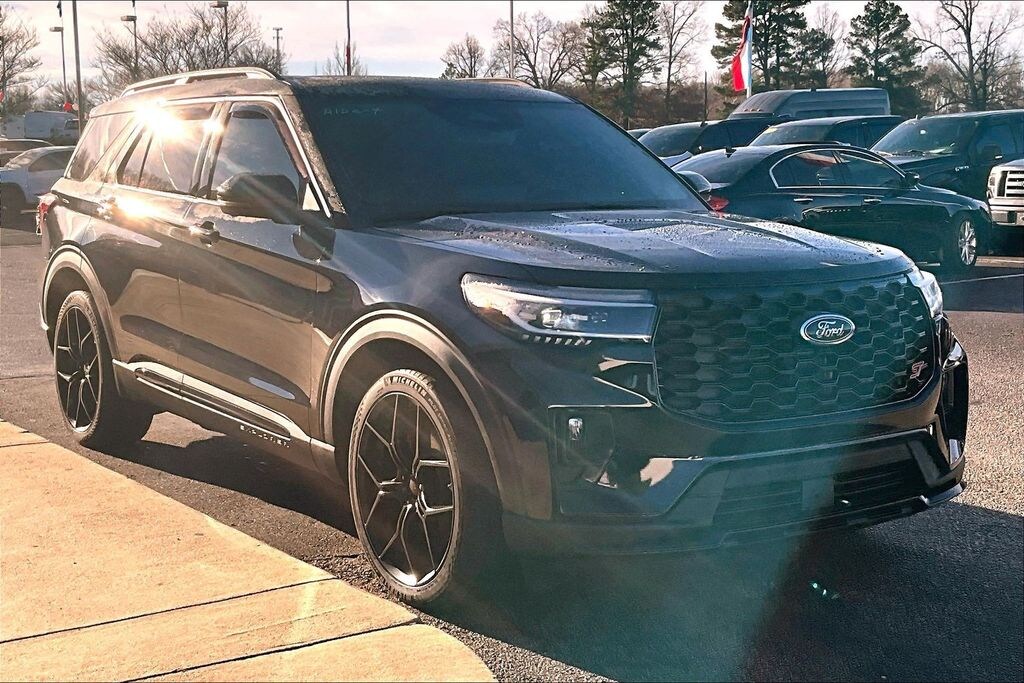 CARFAX One-Owner. Black Metallic 2025 Ford Explorer ST 4WD 10-Speed Automatic 3.0L EcoBoost V6 **ONE OWNER**, 4WD, 10 Speakers, Air Conditioning, AM/FM radio: SiriusXM with 360L, Auto High-beam Headlights, Equipment Group 400A Standard Package, Exterior Parking Camera Rear, Fully automatic headlights, Navigation System, Panic alarm, Power driver seat, Premium Leather 40/20/40 Front Seat, Radio: B&O Sound System by Bang & Olufsen, Speed control, Steering wheel mounted audio controls, Traction control, Wheels: 21" Magnetite-Painted Aluminum.