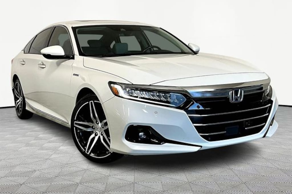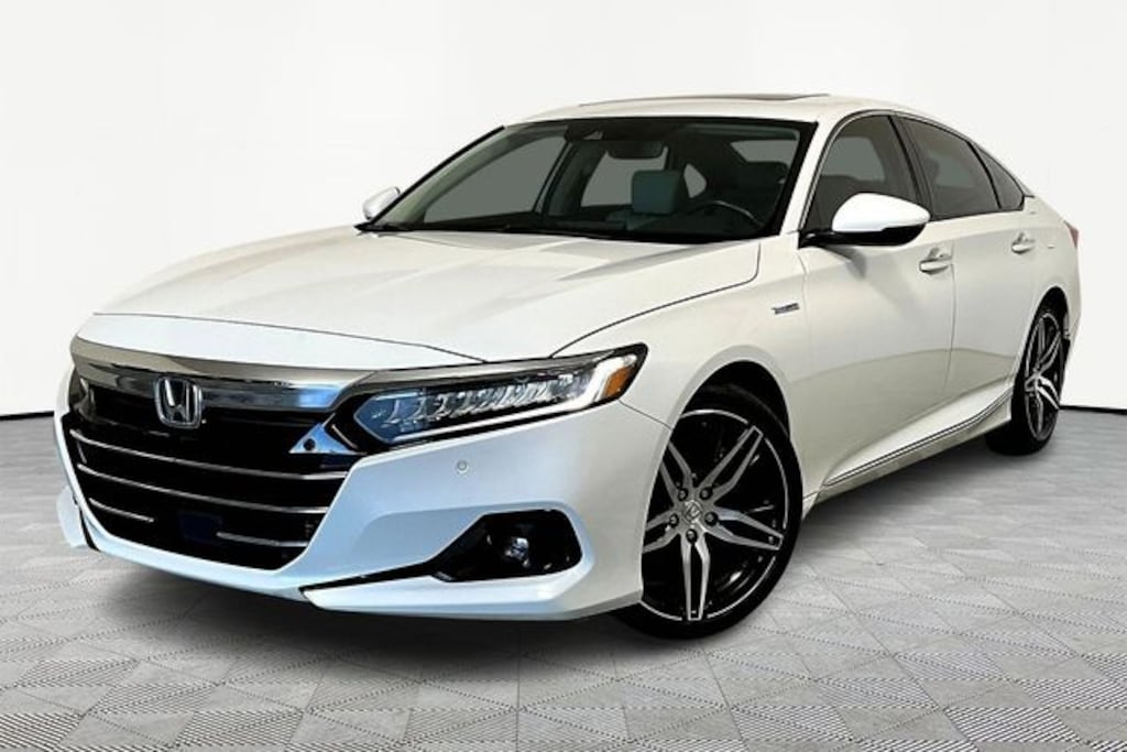 Accord Hybrid Touring, 2.0L 4-Cylinder DOHC 16V i-VTEC, FWD, 10 Speakers, Apple CarPlay/Android Auto, Blind Spot Information (BSI) System warning, Exterior Parking Camera Rear, Forward collision: Collision Mitigation Braking System (CMBS) + FCW mitigation, Fully automatic headlights, Heated & Ventilated Front Bucket Seats, Lane Departure Warning System, Navigation system: Honda Satellite-Linked Navigation System, Power moonroof, Radio: 450-Watt HD Premium Audio System, Security system, Wheels: 19" Machine-Finished Alloy w/Gray Inserts, 4-Wheel Disc Brakes, ABS brakes, Adaptive Cruise Control: Adaptive Cruise Control (ACC) with Low-Speed Follow, Adaptive suspension, Air Conditioning, AM/FM radio: SiriusXM, Auto High-beam Headlights, Auto-dimming Rear-View mirror, Automatic temperature control, Brake assist, Bumpers: body-color, Compass, Delay-off headlights, Driver door bin, Driver vanity mirror, Dual front impact airbags, Dual front side impact airbags, Electronic Stability Control, Emergency communication system: HondaLink, Four wheel independent suspension, Front anti-roll bar, Front Bucket Seats, Front Center Armrest, Front dual zone A/C, Front fog lights, Front reading lights, Garage door transmitter: HomeLink, Heads-Up Display, Heated door mirrors, Heated front seats, Heated rear seats, Illuminated entry, Knee airbag, Leather steering wheel, Low tire pressure warning, Memory seat, Occupant sensing airbag, Outside temperature display, Overhead airbag, Overhead console, Panic alarm, Passenger door bin, Passenger vanity mirror, Perforated Leather Seat Trim, Power door mirrors, Power driver seat, Power passenger seat, Power steering, Power windows, Radio data system, Rain sensing wipers, Rear anti-roll bar, Rear seat center armrest, Rear window defroster, Remote keyless entry, Speed control, Speed-sensing steering, Speed-Sensitive Wipers, Split folding rear seat, Steering wheel mounted audio controls, Telescoping steering wheel, Tilt steering wheel, Traction control, Trip computer, Turn signal indicator mirrors, Variably intermittent wipers, and Ventilated front seats.