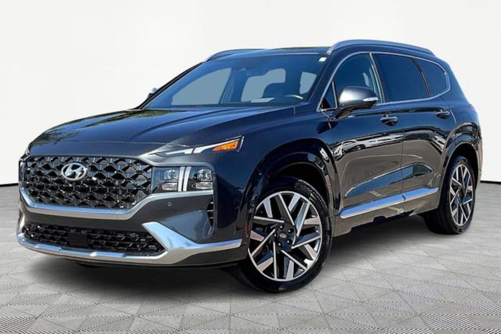 Option Group 01, Santa Fe Calligraphy, 2.5L I4, FWD, 12 Speakers, Apple CarPlay & Android Auto, Exterior Parking Camera Rear, Fully automatic headlights, harman/kardon® Speakers, Navigation System, Power Liftgate, Power moonroof, Speed control, Wheels: 20" x 8.0J Alloy, 4-Wheel Disc Brakes, ABS brakes, Air Conditioning, All Season Fitted Liners, Alloy wheels, AM/FM radio: SiriusXM, Auto High-beam Headlights, Auto-dimming Rear-View mirror, Automatic temperature control, Axle Ratio: 3.316, Brake assist, Bumpers: body-color, Cargo Cover/Screen, Cargo Net, Cargo Tray, Carpeted Floor Mats, Delay-off headlights, Driver door bin, Driver vanity mirror, Dual front impact airbags, Dual front side impact airbags, Electronic Stability Control, Emergency communication system, First Aid Kit, Four wheel independent suspension, Front anti-roll bar, Front Bucket Seats, Front Center Armrest, Front dual zone A/C, Front reading lights, Garage door transmitter: HomeLink, Heads-Up Display, Heated & Ventilated Front Bucket Seats, Heated door mirrors, Heated front seats, Heated rear seats, Heated steering wheel, Illuminated entry, Leather steering wheel, Low tire pressure warning, Memory seat, Occupant sensing airbag, Outside temperature display, Overhead airbag, Overhead console, Panic alarm, Passenger door bin, Passenger vanity mirror, Power door mirrors, Power driver seat, Power passenger seat, Power steering, Power windows, Quilted Premium Nappa Leather Seat Trim, Radio: AM/FM Harman Kardon Display Audio, Rain sensing wipers, Rear anti-roll bar, Rear seat center armrest, Rear window defroster, Rear window wiper, Remote keyless entry, Security system, Speed-sensing steering, Split folding rear seat, Spoiler, Steering wheel mounted audio controls, Tachometer, Telescoping steering wheel, Tilt steering wheel, Traction control, Trip computer, Turn signal indicator mirrors, Variably intermittent wipers, and Ventilated front seats.