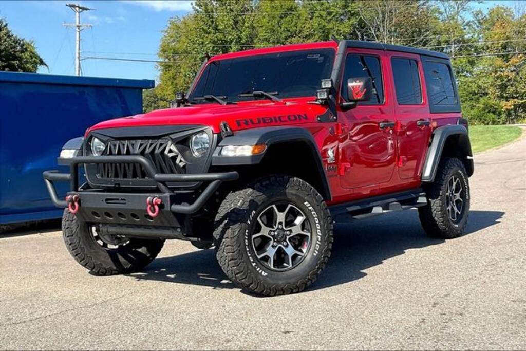 Cold Weather Group (Heated Front Seats and Heated Steering Wheel), Electronic Infotainment System Group (GPS Navigation, Radio: Uconnect 4C Nav w/8.4" Display, 1-Year SiriusXM Guardian Trial, 5-Year SiriusXM Traffic Service, 5-Year SiriusXM Travel Link Service, 8.4" Touchscreen Display, Alpine Premium Audio System, Auto-Dimming Rear-View Mirror, HD Radio, Roadside Assistance & 9-1-1 Call, SiriusXM Traffic Plus, and SiriusXM Travel Link), Quick Order Package 24R, Wrangler Unlimited Rubicon, 3.6L V6 24V VVT, 4WD, Apple CarPlay/Android Auto, Black 3-Piece Hard Top, Freedom Panel Storage Bag, Fully automatic headlights, ParkView Rear Back-Up Camera, Rear Window Defroster, Rear Window Wiper/Washer, Security system, Speed control, Telescoping steering wheel, Tilt steering wheel, Wheels: 17" x 7.5" Polished w/Black Pockets, 4-Wheel Disc Brakes, 4.10 Rear Axle Ratio, 8 Speakers, ABS brakes, Air Conditioning, AM/FM radio: SiriusXM, Automatic temperature control, Brake assist, Compass, Delay-off headlights, Driver door bin, Driver vanity mirror, Dual front impact airbags, Dual front side impact airbags, Electronic Stability Control, Front anti-roll bar, Front Bucket Seats, Front Center Armrest w/Storage, Front dual zone A/C, Front fog lights, Front reading lights, Garage door transmitter, Heated door mirrors, Illuminated entry, Integrated roll-over protection, Leather steering wheel, Low tire pressure warning, Non-Lock Fuel Cap w/o Discriminator, Occupant sensing airbag, Outside temperature display, Panic alarm, Passenger door bin, Passenger vanity mirror, Performance Suspension, Power door mirrors, Power steering, Power windows, Premium Cloth Low-Back Bucket Seats, Radio data system, Radio: Uconnect 4 w/7" Display, Rear anti-roll bar, Rear reading lights, Remote keyless entry, Remote Proximity Keyless Entry, Remote Start System, Split folding rear seat, Steering wheel mounted audio controls, Tachometer, Traction control, Trip computer, Variably intermittent wipers, and Voltmeter.