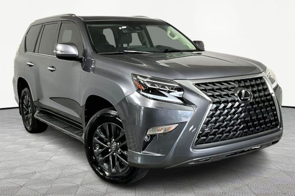 Premium Package (Dual Front & Rear Auto Air Conditioner, Front & Rear Heated Seats, LED Front Fog & Driving Lamp, NuLuxe Seat Trim, Ventilated Front Seats, Windshield De-Icer, and Windshield Wiper Control w/Rain Sensor), GX 460, 4.6L V8 DOHC Dual VVT-i 32V, 4WD, 18" x 7.5J Aluminum Alloy Wheels, Apple CarPlay/Android Auto, Auto tilt-away steering wheel, Exterior Parking Camera Rear, Fully automatic headlights, Navigation System, Power moonroof, Radio: Lexus Multimedia System, Security system, Speed control, 3.909 Axle Ratio, 3rd row seats: split-bench, 4-Wheel Disc Brakes, 9 Speakers, ABS brakes, Air Conditioning, AM/FM radio: SiriusXM, Anti-whiplash front head restraints, Auto High-beam Headlights, Auto-dimming Rear-View mirror, Automatic temperature control, Brake assist, Bumpers: body-color, CD player, Compass, Delay-off headlights, Driver door bin, Driver vanity mirror, Driver's Seat Mounted Armrest, Dual front impact airbags, Dual front side impact airbags, Electronic Stability Control, Emergency communication system, Front anti-roll bar, Front Bucket Seats, Front dual zone A/C, Front reading lights, Front wheel independent suspension, Garage door transmitter: HomeLink, Heated door mirrors, Illuminated entry, Illuminated running boards, Knee airbag, Leather Shift Knob, Leather steering wheel, Low tire pressure warning, Memory seat, NuLuxe Synthetic Leather Seat Trim, Occupant sensing airbag, Outside temperature display, Overhead airbag, Overhead console, Panic alarm, Passenger door bin, Passenger seat mounted armrest, Passenger vanity mirror, Power door mirrors, Power driver seat, Power passenger seat, Power steering, Power windows, Radio data system, Rear anti-roll bar, Rear reading lights, Rear seat center armrest, Rear side impact airbag, Rear window defroster, Rear window wiper, Remote keyless entry, Roof rack: rails only, Speed-sensing steering, Split folding rear seat, Spoiler, Steering wheel memory, Steering wheel mounted audio controls, Tachometer, Telescoping steering wheel, Tilt steering wheel, Traction control, Trip computer, Turn signal indicator mirrors, and Variably intermittent wipers.