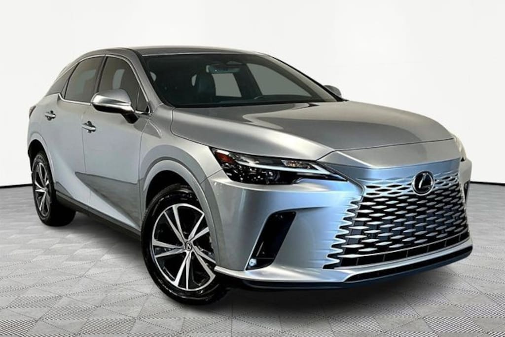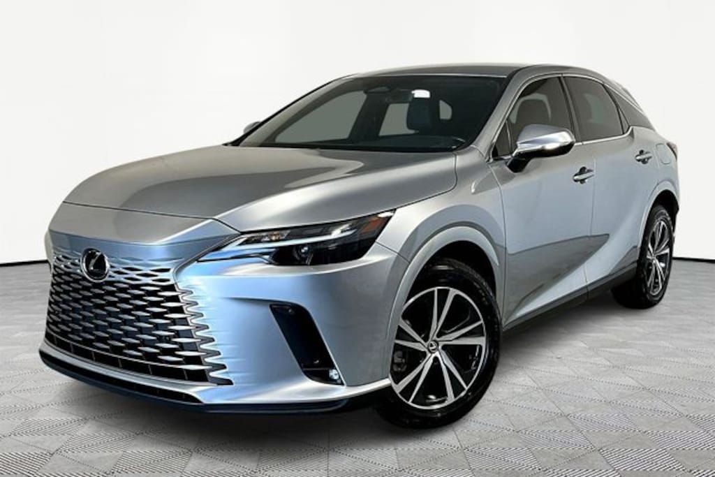 RX 350, 2.4L I4 PDI Turbocharged DOHC 16V LEV3-SULEV30 275hp, FWD, 12 Speakers, 19" Wheels, Alloy wheels, Exterior Parking Camera Rear, Fully automatic headlights, Navigation System, Power Liftgate, Radio: Lexus Interface w/9.8" HD Touchscreen Display, Rear Parking Sensors, Security system, Wireless Apple CarPlay/Wireless Android Auto, 3.33 Axle Ratio, 4-Wheel Disc Brakes, ABS brakes, Air Conditioning, AM/FM radio: SiriusXM, Anti-whiplash front head restraints, Auto High-beam Headlights, Auto-dimming door mirrors, Auto-dimming Rear-View mirror, Automatic temperature control, Brake assist, Bumpers: body-color, Compass, Delay-off headlights, Driver door bin, Driver vanity mirror, Dual front impact airbags, Dual front side impact airbags, Electronic Stability Control, Emergency communication system: Safety Connect (10-year trial), Four wheel independent suspension, Front anti-roll bar, Front Bucket Seats, Front Center Armrest, Front dual zone A/C, Front fog lights, Front reading lights, Garage door transmitter: HomeLink, Genuine wood console insert, Heated door mirrors, Heated Front Bucket Seats, Heated front seats, Illuminated entry, Leather Shift Knob, Leather steering wheel, Low tire pressure warning, NuLuxe Seat Trim, Occupant sensing airbag, Outside temperature display, Overhead airbag, Overhead console, Passenger door bin, Passenger vanity mirror, Power door mirrors, Power driver seat, Power passenger seat, Power steering, Power windows, Radio data system, Rain sensing wipers, Rear air conditioning, Rear anti-roll bar, Rear reading lights, Rear seat center armrest, Rear side impact airbag, Rear window defroster, Rear window wiper, Remote keyless entry, Speed control, Speed-sensing steering, Split folding rear seat, Spoiler, Steering wheel mounted audio controls, Tachometer, Telescoping steering wheel, Tilt steering wheel, Traction control, Trip computer, Turn signal indicator mirrors, and Variably intermittent wipers.