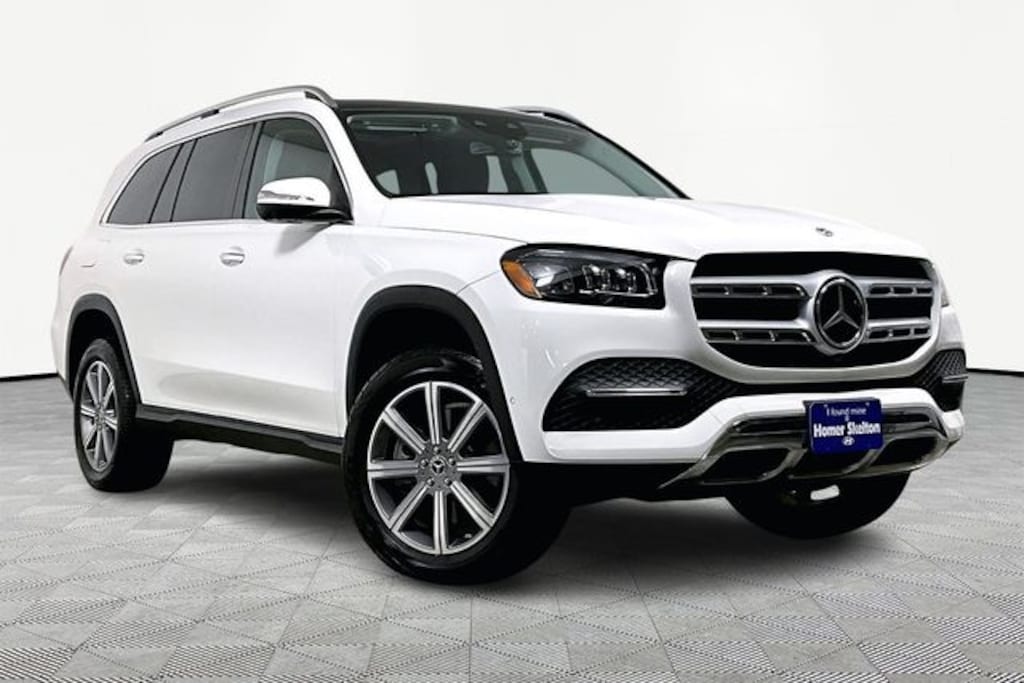 AMG® Line Exterior (AMG® Bodystyling), GLS 450 4MATIC®, 3.0L I6, 4MATIC®, Apple CarPlay®/Android Auto®, Exterior Parking Camera Rear, Fully automatic headlights, Heated and Ventilated Power Front Seats w/Memory, Navigation system: MB Navigation, Power Liftgate, Power moonroof: Panorama, Security system, Wheels: 20" 8-Spoke, 13 Speakers, 3.27 Axle Ratio, 3rd row seats: split-bench, 4-Wheel Disc Brakes, 7-Seat Configuration, ABS brakes, Active Brake Assist w/Cross-Traffic Function, Adaptive suspension, Air Conditioning, AM/FM radio: SiriusXM, Auto High-beam Headlights, Auto tilt-away steering wheel, Auto-dimming door mirrors, Auto-dimming Rear-View mirror, Auto-leveling suspension, Automatic temperature control, Brake assist, Bumpers: body-color, Child-Seat-Sensing Airbag, Compass, Delay-off headlights, Driver door bin, Driver vanity mirror, Dual front impact airbags, Dual front side impact airbags, Electronic Stability Control, Emergency communication system: eCall Emergency System, Four wheel independent suspension, Front anti-roll bar, Front Bucket Seats, Front Center Armrest w/Storage, Front dual zone A/C, Front reading lights, Garage door transmitter: HomeLink, Genuine wood console insert, Genuine wood dashboard insert, Genuine wood door panel insert, Head restraints memory, Heated door mirrors, Heated front seats, Illuminated entry, Knee airbag, Low tire pressure warning, MB-Tex Upholstery, Memory seat, Occupant sensing airbag, Outside temperature display, Overhead airbag, Overhead console, Panic alarm, Passenger door bin, Passenger vanity mirror, Power adjustable front head restraints, Power door mirrors, Power driver seat, Power passenger seat, Power steering, Power windows, Premium audio system: MBUX, Radio: MBUX Multimedia System, Rain sensing wipers, Rear air conditioning, Rear anti-roll bar, Rear dual zone A/C, Rear fog lights, Rear reading lights, Rear seat center armrest, Rear window defroster, Rear window wiper, Remote keyless entry, Roof rack: rails only, Speed control, Speed-sensing steering, Speed-Sensitive Wipers, Split folding rear seat, Spoiler, Steering wheel memory, Steering wheel mounted audio controls, Tachometer, Telescoping steering wheel, Tilt steering wheel, Traction control, Trip computer, Turn signal indicator mirrors, Variably intermittent wipers, Ventilated front seats, and Weather band radio.