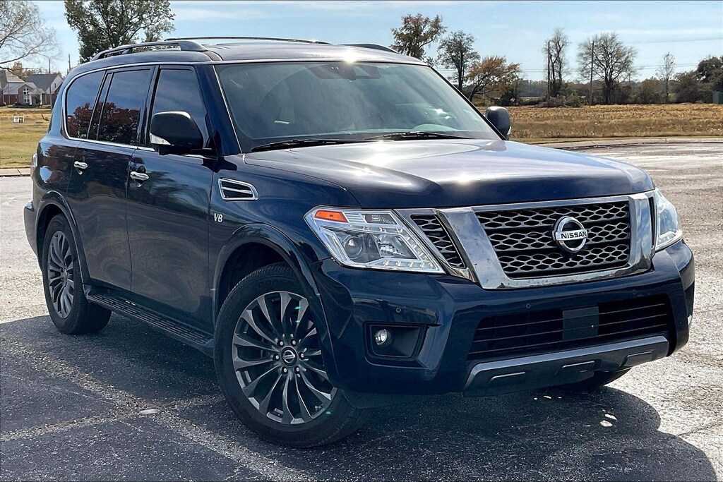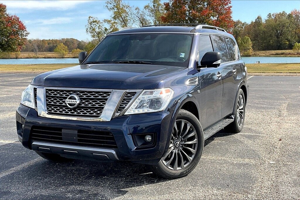 2020 Nissan Armada Platinum Hermosa Blue Pearl 5.6L V8 7-Speed Automatic RWD **CLEAN VEHICLE HISTORY REPORT**, **LOCAL TRADE**, 22" Wheel Package, 2nd Row Captain's Chairs, 2nd Row Center Console w/Padded Armrest, Captain's Chairs Package, Cargo Package, Platinum Reserve Package, Power moonroof, Two-Tone Leather Seat Trim, Wheels: 22" x 8.0" 14-Spoke Forged Aluminum-Alloy.