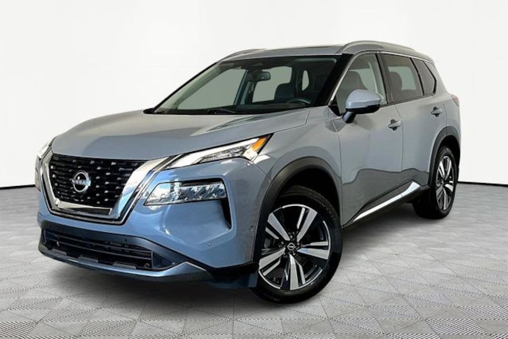 SL Premium Package (Bose Premium Audio System, Front, Side & Rear Sonar, Motion Activated Power Liftgate, ProPILOT Assist w/Navi-link, Radio: AM/FM NissanConnect w/Navigation, Rear Door Sunshades, Traffic Sign Recognition, and Tri-Zone HVAC), Rogue SL, 1.5L I3 Turbocharged DOHC 12V LEV3-ULEV50 201hp, FWD, 19" Aluminum Alloy Wheels, Fully automatic headlights, Heated Front Bucket Seats, Power Liftgate, Power moonroof, Rear Parking Sensors, Security system, 4-Wheel Disc Brakes, 5.604 Axle Ratio, 6 Speakers, ABS brakes, Air Conditioning, AM/FM Radio, AM/FM radio: SiriusXM, Auto High-beam Headlights, Auto-dimming Rear-View mirror, Automatic temperature control, Black Splash Guards (Set of 4), Brake assist, Bumpers: body-color, Chrome Rear Bumper Protector, Delay-off headlights, Driver door bin, Driver vanity mirror, Dual front impact airbags, Dual front side impact airbags, Electronic Stability Control, Emergency communication system: NissanConnect Services, First Aid Kit, Floor Mats w/2-Piece Cargo Area Protector, Four wheel independent suspension, Front anti-roll bar, Front Bucket Seats, Front Center Armrest, Front dual zone A/C, Front reading lights, Heated door mirrors, Heated front seats, Heated steering wheel, Illuminated entry, Knee airbag, Leather steering wheel, Leather-Appointed Seat Trim, Low tire pressure warning, Memory seat, NissanConnect featuring Apple CarPlay and Android Auto, Occupant sensing airbag, Outside temperature display, Overhead airbag, Overhead console, Panic alarm, Passenger door bin, Passenger vanity mirror, Power door mirrors, Power driver seat, Power passenger seat, Power steering, Power windows, Radio data system, Rear anti-roll bar, Rear reading lights, Rear seat center armrest, Rear side impact airbag, Rear window defroster, Rear window wiper, Remote keyless entry, Speed control, Speed-Sensitive Wipers, Split folding rear seat, Spoiler, Steering wheel mounted audio controls, Tachometer, Telescoping steering wheel, Tilt steering wheel, Traction control, Trip computer, Turn signal indicator mirrors, and Variably intermittent wipers.