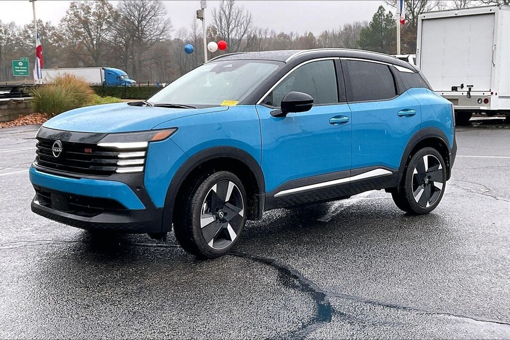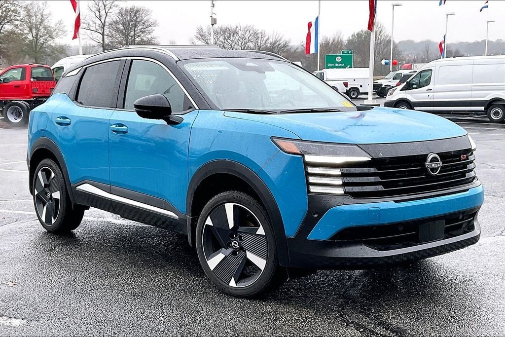 CARFAX One-Owner. Clean CARFAX. Arctic Ice Blue Metallic/Super Black 2025 Nissan Kicks SR AWD CVT with Xtronic 2.0L DOHC **CLEAN VEHICLE HISTORY REPORT**, **ONE OWNER**, Kicks SR, 4D Sport Utility, 2.0L DOHC, CVT with Xtronic, Sport Cloth, 19" Alloy Wheels, 6 Speakers, Air Conditioning, Fully automatic headlights, Radio: AM/FM Audio System, Security system, Speed control, Steering wheel mounted audio controls.