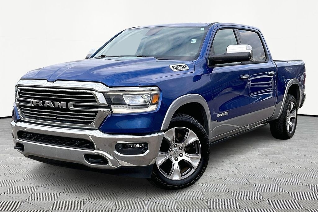 CARFAX One-Owner. Clean CARFAX. Blue Streak Pearlcoat 2019 Ram 1500 Laramie 4WD 8-Speed Automatic HEMI 5.7L V8 Multi Displacement VVT **Clean Vehicle History Report**, **One Owner**, **Local Trade In**, Auto High Beam Headlamp Control, Blind Spot & Cross Path Detection, Foam Bottle Insert (Door Trim Panel), GPS Navigation, harman/kardon 19 Speaker Premium Sound, Heated Second Row Seats, Laramie Level 2 Equipment Group, ParkSense Front/Rear Park Assist w/Stop, Power Chrome Trailer Tow Mirrors, Protection Group, Quick Order Package 25H Laramie, Radio: Uconnect 4C Nav w/8.4" Display, Rain Sensitive Windshield Wipers, Rear 60/40 Folding Split Recline Seat, Rear Underseat Compartment Storage, Remote Tailgate Release, Single Disc Remote CD Player, Tailgate Ajar Warning Lamp, Tow Hooks, Trailer Brake Control, Trailer Tow Group, Trailer Tow Mirrors, Wheels: 20" x 9" Premium Paint/Polished, Wireless Charging Pad.