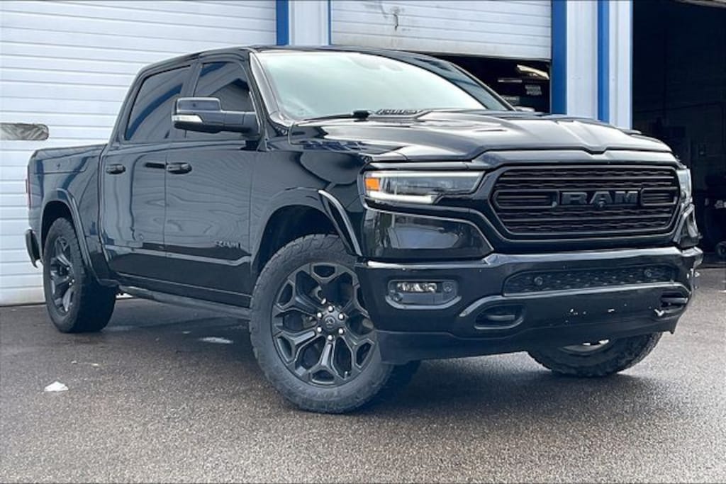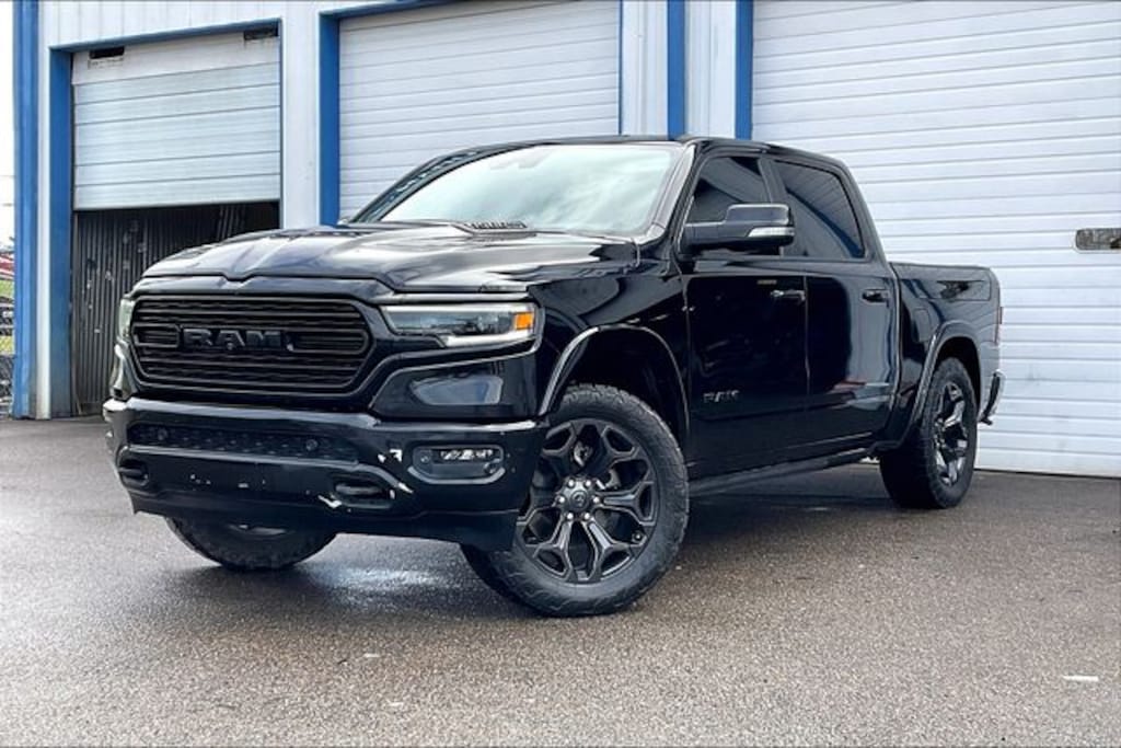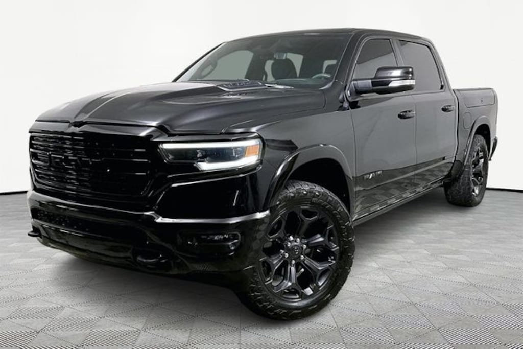 Limited Level 1 Equipment Group (Adaptive Cruise Control w/Stop & Go, Lane Keep Assist, Parallel & Perp Park Assist w/Stop, Pedestrian Emergency Braking, Surround View Camera System, and Ventilated Rear Seats), Technology Group (Heads-Up Display, LED CHMSL Lamp, and Rearview Autodim Digital Display Mirror), Bed Utility Group (MOPAR 4 Adjustable Cargo Tie-Down Hooks, MOPAR Deployable Bed Step, and Pick-Up Box Lighting), Night Edition (harman/kardon 19 Speaker Premium Sound, Wheels: 22" x 9" Black Aluminum, Accent Color Premium Power Mirrors, Black Day Light Opening Moldings, Black Exterior Truck Badging, Black Grille Surround Texture 7 Chrome, Black Headlamp Bezels, Black Painted Exterior Mirrors Caps, Body Color Door Handles, Body Color Front Bumper, Body Color Rear Bumper w/Step Pads, Dual Exhaust w/Black Tips, RAM Grille Badge - Black, Sport Performance Hood, Tow Hooks, and Tri-Fold Tonneau Cover), Quick Order Package 25M Limited, 1500 Limited, 4D Crew Cab, HEMI 5.7L V8 Multi Displacement VVT, 4WD, 1-Yr SiriusXM Guardian Trial, 12" Touchscreen Display, 4G LTE Wi-Fi Hot Spot, Apple CarPlay, Apple CarPlay/Android Auto, Disassociated Touchscreen Display, Dome Dual LED Reading Lamp, Dual-Pane Panoramic Sunroof, For More Info, Call 800-643-2112, Fully automatic headlights, Google Android Auto, GPS Antenna Input, GPS Navigation, HD Radio, Integrated Center Stack Radio, Integrated Voice Command w/Bluetooth, LED Dome/Reading Lamp, Navigation System, ParkView Rear Back-Up Camera, Radio: Uconnect 12 w/Navigation, Remote keyless entry, Security system, SiriusXM Radio Service, SiriusXM Satellite Radio, SiriusXM Traffic Plus, SiriusXM Travel Link, SiriusXM w/360L, Steering wheel mounted audio controls, USB Host Flip, 10 Speakers, 3.21 Rear Axle Ratio, 33 Gallon Fuel Tank, 4-Wheel Disc Brakes, 48V Belt Starter Generator, ABS brakes, Adjustable pedals, Air Conditioning, AM/FM radio: SiriusXM with 360L, Anti-Spin Differential Rear Axle, Audio memory, Auto High-beam Headlights, Auto-dimming door mirrors, Auto-dimming Rear-View mirror, Auto-leveling suspension, Automatic temperature control, Bodyside moldings, Brake assist, Bumpers: chrome, Chrome Exterior Mirrors, Compass, Delay-off headlights, Driver door bin, Driver vanity mirror, Dual front impact airbags, Dual front side impact airbags, Electronic Stability Control, Emergency communication system: SiriusXM Guardian, Exterior 115V AC Outlet, Front anti-roll bar, Front Bucket Seats, Front Center Armrest w/Storage, Front dual zone A/C, Front fog lights, Front License Plate Bracket, Front reading lights, Front wheel independent suspension, Garage door transmitter, Genuine wood console insert, Genuine wood dashboard insert, Genuine wood door panel insert, Heated door mirrors, Heated front seats, Heated rear seats, Heated steering wheel, Illuminated entry, Leather steering wheel, Low tire pressure warning, Manufacturer's Statement of Origin, Memory seat, Occupant sensing airbag, Outside temperature display, Overhead airbag, Overhead console, Panic alarm, Passenger door bin, Passenger vanity mirror, Pedal memory, Power door mirrors, Power driver seat, Power passenger seat, Power steering, Power windows, Premium Leather Trimmed Bucket Seats, Radio data system, Rain sensing wipers, RamBox Cargo Management System, Rear anti-roll bar, Rear seat center armrest, Rear step bumper, Rear window defroster, Speed control, Split folding rear seat, Tachometer, Telescoping steering wheel, Tilt steering wheel, Traction control, Trailer Brake Control, Trip computer, Turn signal indicator mirrors, Variably intermittent wipers, Ventilated front seats, and Voltmeter.