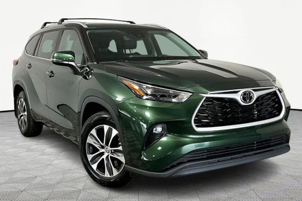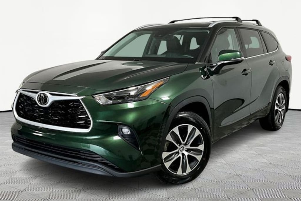 Highlander XLE, 2.4L I4 PDI Turbocharged DOHC 16V LEV3-SULEV30 265hp, FWD, ABS brakes, Active Cruise Control, Apple CarPlay/Android Auto, Electronic Stability Control, Front dual zone A/C, Fully automatic headlights, Heated door mirrors, Heated Front Bucket Seats, Heated front seats, Illuminated entry, Low tire pressure warning, Power Liftgate, Remote keyless entry, Security system, Traction control, Wheels: 18" Machined-Finish Alloy, 3.329 Axle Ratio, 3rd row seats: split-bench, 4-Wheel Disc Brakes, 6 Speakers, Air Conditioning, Alloy wheels, AM/FM radio: SiriusXM, Auto High-beam Headlights, Auto-dimming Rear-View mirror, Automatic temperature control, Brake assist, Bumpers: body-color, Delay-off headlights, Driver door bin, Driver vanity mirror, Dual front impact airbags, Dual front side impact airbags, Emergency communication system: Safety Connect (up to 10-year trial subscription), Exterior Parking Camera Rear, Four wheel independent suspension, Front anti-roll bar, Front Bucket Seats, Front Center Armrest, Front fog lights, Front reading lights, Garage door transmitter: HomeLink, Knee airbag, Leather Shift Knob, Leather steering wheel, Occupant sensing airbag, Outside temperature display, Overhead airbag, Overhead console, Panic alarm, Passenger door bin, Passenger vanity mirror, Power door mirrors, Power driver seat, Power passenger seat, Power steering, Power windows, Radio: 8" Toyota Audio Multimedia, Rear air conditioning, Rear anti-roll bar, Rear reading lights, Rear window defroster, Rear window wiper, Reclining 3rd row seat, Roof rack: rails only, SofTex Seat Trim, Speed control, Speed-sensing steering, Split folding rear seat, Spoiler, Steering wheel mounted audio controls, Tachometer, Telescoping steering wheel, Tilt steering wheel, Trip computer, Turn signal indicator mirrors, and Variably intermittent wipers.