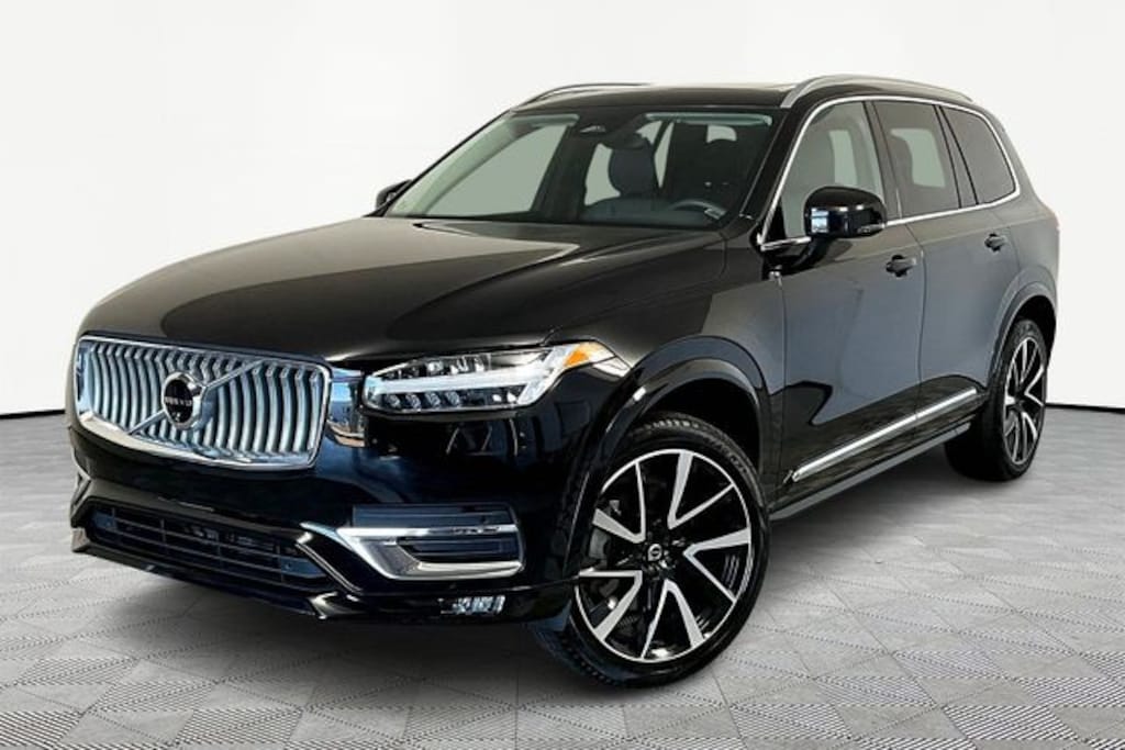 XC90 B5 Plus, 2.0L I4 Turbocharged DOHC 16V LEV3-ULEV70, AWD, 10 Speakers, Apple CarPlay, Exterior Parking Camera Rear, Fully automatic headlights, harman/kardon Premium Sound, Heated Front Bucket Seats, Power Liftgate, Power moonroof, Security system, Speed control, Wheels: 20" 10-Spoke Black Diamond Cut Alloy, Wheels: 22" 20-Spoke Black Diamond Cut, 3rd row seats: bucket, 4-Wheel Disc Brakes, ABS brakes, Air Conditioning, AM/FM radio: SiriusXM, Anti-whiplash front head restraints, Auto High-beam Headlights, Auto-dimming door mirrors, Auto-dimming Rear-View mirror, Automatic temperature control, Brake assist, Bumpers: body-color, Delay-off headlights, Driver door bin, Driver vanity mirror, Dual front impact airbags, Dual front side impact airbags, Electronic Stability Control, Emergency communication system: Volvo Cars App w/4 Year Subscription, Four wheel independent suspension, Front anti-roll bar, Front Bucket Seats, Front Center Armrest w/Storage, Front dual zone A/C, Front fog lights, Front reading lights, Garage door transmitter: HomeLink, Genuine wood dashboard insert, Genuine wood door panel insert, Headlight cleaning, Heated door mirrors, Heated front seats, Heated rear seats, Heated steering wheel, Illuminated entry, Integrated rear child seats, Knee airbag, Leather Shift Knob, Leather Upholstery, Low tire pressure warning, Memory seat, Navigation System, Occupant sensing airbag, Outside temperature display, Overhead airbag, Panic alarm, Passenger door bin, Passenger vanity mirror, Power door mirrors, Power driver seat, Power passenger seat, Power steering, Power windows, Radio data system, Radio: High Performance Audio System, Rain sensing wipers, Rear air conditioning, Rear anti-roll bar, Rear dual zone A/C, Rear fog lights, Rear reading lights, Rear seat center armrest, Rear window defroster, Rear window wiper, Remote keyless entry, Speed-sensing steering, Split folding rear seat, Spoiler, Steering wheel mounted audio controls, Tachometer, Telescoping steering wheel, Traction control, Trip computer, Turn signal indicator mirrors, and Variably intermittent wipers.